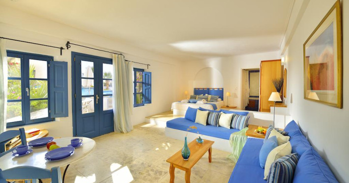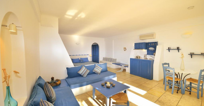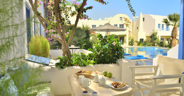 Cel mai apropiat aeroport este Aeroportul Internaţional din Santorini, situat la o distanță de 3,4 km. La cerere proprietatea organizează transfer la/de la aeroport contra cost.