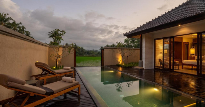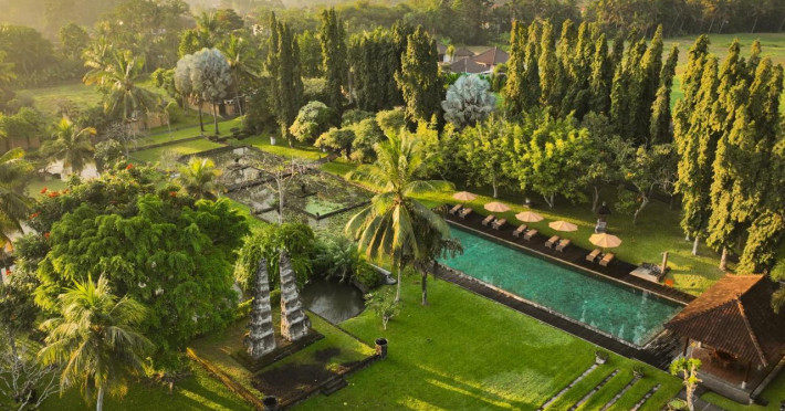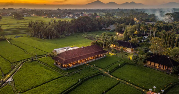 Tanah Gajah Ubud oferă o evadare relaxantă inconjurată de campuri de orez. Situat la 3 km de centrul orașului Ubud, acesta oferă o piscină in aer liber de 28 de metri și cursuri de yoga gratuite la program. Sunt disponibile, de asemenea, drumeții de dimineață la orez, insoțite de majordom personali.