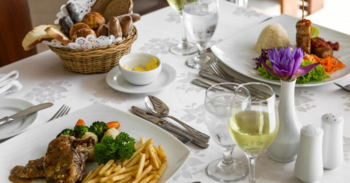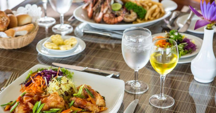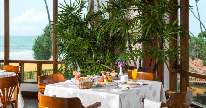Restaurantul Paruwa servește preparate din bucătăria internațională, iar restaurantul Sea Shells oferă gustări ușoare și băuturi răcoritoare. Micul dejun tip bufet este servit zilnic.