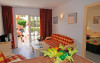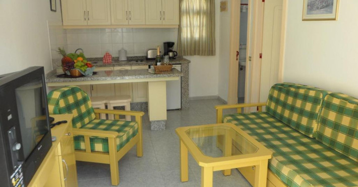 The apartments at Apartamentos Tara feature tiled floors and beach-style décor. Each one has a seating area with a flat-screen TV and a sofa bed, and the kitchenette includes a hob and fridge.