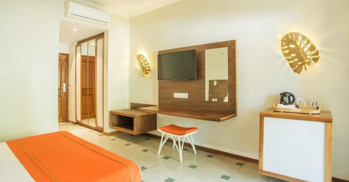 Hotelul beneficiaza de 75 de camere, dotate cu aer conditionat si terasa sau balcon. Majoritatea camerelor au vedere spre mare, piscina sau gradina. Camerele sunt proaspat renovate, mobilate modern si decorate in stil specific mauritian. Toate camerele beneficiaza de baie proprie cu cabina de dus. In dotarea camrelor se incadreaza si: televizor cu ecran plat, access gratuity la Wi-Fi, telefon, seif, uscator de par, mini frigider, facilitate pentru prepararea ceaiului si cafelei.