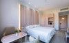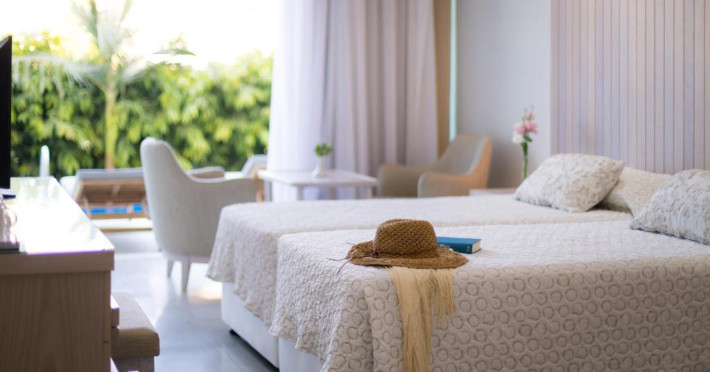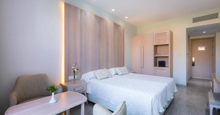 Camerele confortabile de la Tasia Maris Beach Hotel au pardoseală de gresie/ marmură, aer condiționat, Tv cu canale prin satelit și seif. Fiecare cameră oferă cană-fierbător și mașină pentru prepare cafea sau ceai. Oaspeții pot solicita serviciul de room service pentru a servi masa sau diverse băuturi. Oaspeții au acces gratuit la serviciul Wi-fi în camere. În camere există baie cu cadă sau duș, foehn, articole de toaletă gratuite, precum și halate de baie și papuci. Unele camere au balcon cu vedere la mare. Curățenia in cameră se face zilnic.