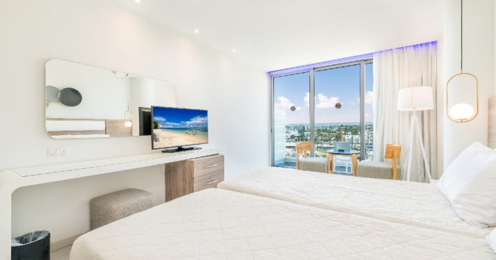 Dotari camera: Camerele elegante si moderne sunt decorate si mobilate cu gust. Fiecare camera este dotata cu aer conditionat si are incalzire centrala, cabina de dus cu efect de ploaie , , cutie de valori, facilitati pentru prepararea de ceai si cafea, mini-frigider, uscator de par si WIFI gratuit. Fiecare camera este dotata cu TV LCD cu ecran plat cu canale prin satelit. (Se poate aplica o taxa suplimentara pentru unele functii). Toate camerele au un balcon privat cu scaune si masuta de cafea, oferind vedere la gradina, vedere laterala la mare sau vedere completa (Sandy Bay).