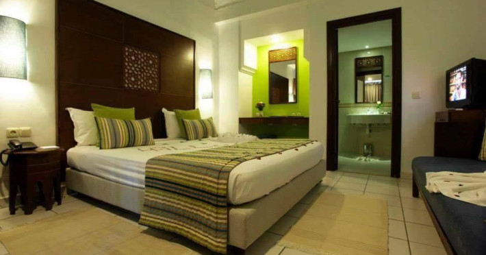 Camerele luminoase de la Tej Marhaba sunt dotate cu mochetă, aer condiționat, Tv și seif. Fiecare cameră dispune de un aparat pentru preparare cafea sau ceai. Oaspeții pot solicita serviciul de room service pentru a servi masa sau diverse băuturi. Unele camere au balcon cu vedere la piscină. În camere există baie cu cadă sau duș, foehn, articole de toaletă gratuite, precum și halate de baie și papuci. Oaspeții au acces gratuit la serviciul Wi-fi în camere. Curățenia in cameră se face zilnic. Proprietatea oferă camere pentru familie cu o suprafață mai mare și un număr mai mare de paturi față de cele standard.