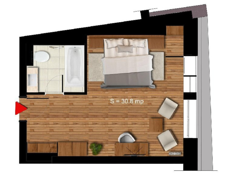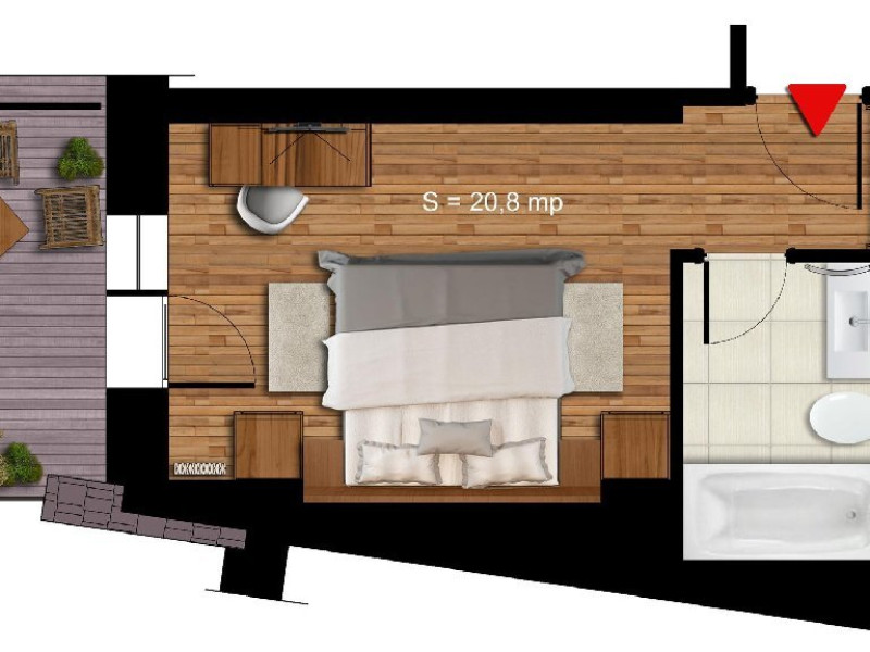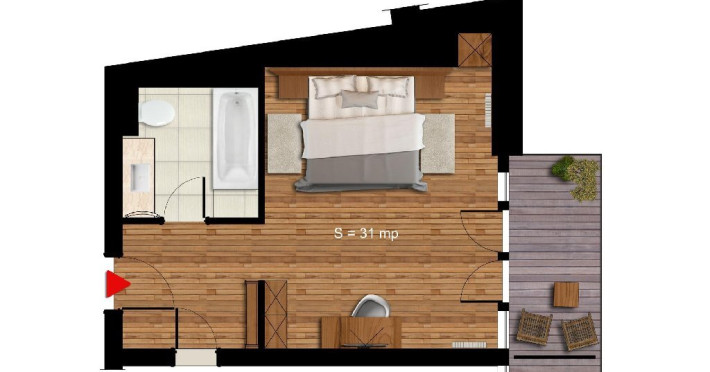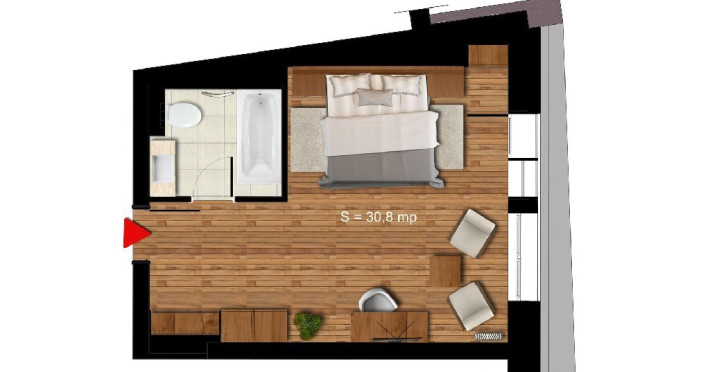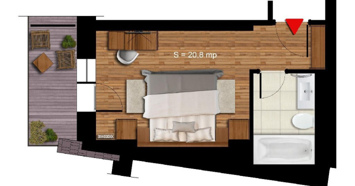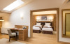 6 APARTAMENTE JUNIOR PREMIUN - 42 mp, ofera o zona de relaxare cu canapea extensibila de 140 cm, birou de lucru, minibar, TV si conexiune wireless gratuita la internet.