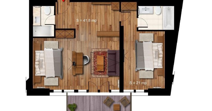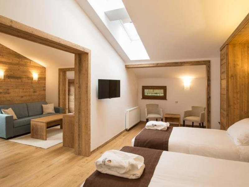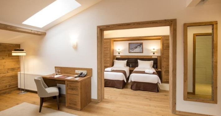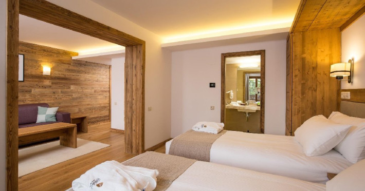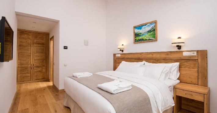 3 APARTAMENTE DELUXE - 60 mp, apartamentele Deluxe dispun de un dormitor separat fata de camera cu pat matrimonial si canapea extensibila. Picturile originale suprind placut si intregesc atmosfera de eleganta a unui hotel de munte, fara varsta, care se adreseaza spiritului. Confortul este subliniat prin camera spatioasa de baie, alaturi de toaleta de serviciu. Toate facilitatile sunt oferite la nivel superior: TV, minibar, conexiune wireless la internet gratuita, control individual al temperaturii, impreuna cu un serviciu impecabil pentru orice nevoi sau cerinte.