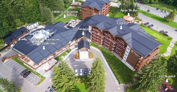 INFORMATII GENERALEHotelul Teleferic din Poiana Brasov reprezinta intruchiparea unei legende a turismului romanesc. Pozitionat la baza partiei principale, langa telecabina, hotelul a fost denumit Teleferic. S-a dezvoltat rapid beneficiind de privelistea minunata, usurinta accesului la partii iarna, sau la trasee montane vara, cat si de confortul oferit de un ansamblu hotelier modern si primitor.