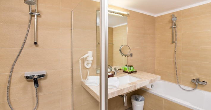 Se poate opta pentru pat matrimonial sau paturi separate. Majoritatea camerelor au balcon cu spatiu pentru relaxare, scaune si masuta