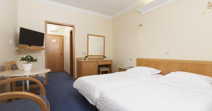 Oaspeții au la dispoziție serviciul de room service pentru a servi masa sau diverse băuturi. Camerele luminoase de la Telioni Hotel sunt dotate cu mochetă, aer condiționat, Tv cu canale prin satelit și seif. În camere există baie cu cadă sau duș ce are în dotare foehn și articole de toaletă gratuite. Oaspeții au acces gratuit la serviciul Wi-fi în camere. Curățenia in cameră se face zilnic. Fiecare unitate de cazare are frigider. Proprietatea oferă camere pentru familie cu o suprafață mai mare și un număr mai mare de paturi față de cele standard. Se pot rezerva de asemenea camere pentru nefumători.