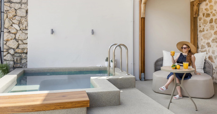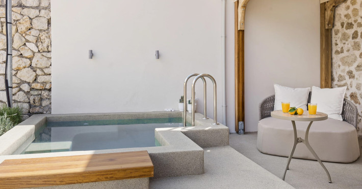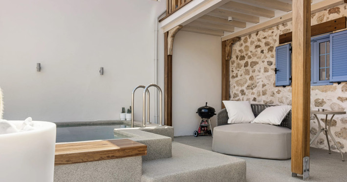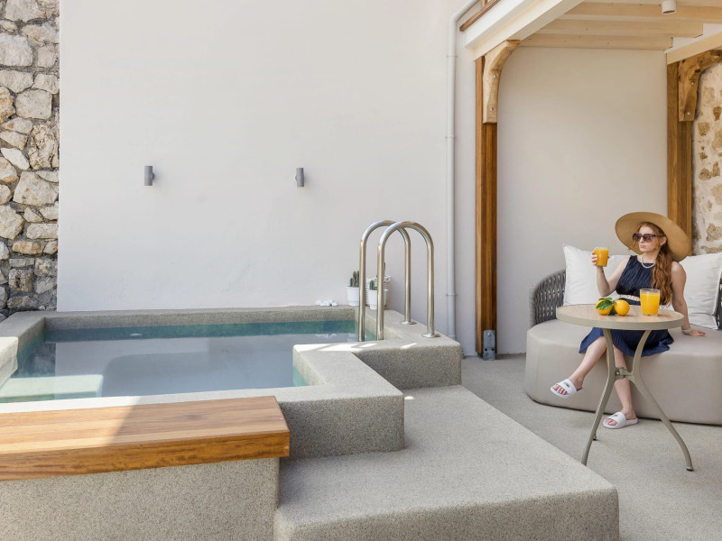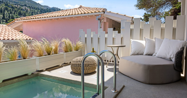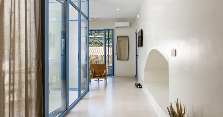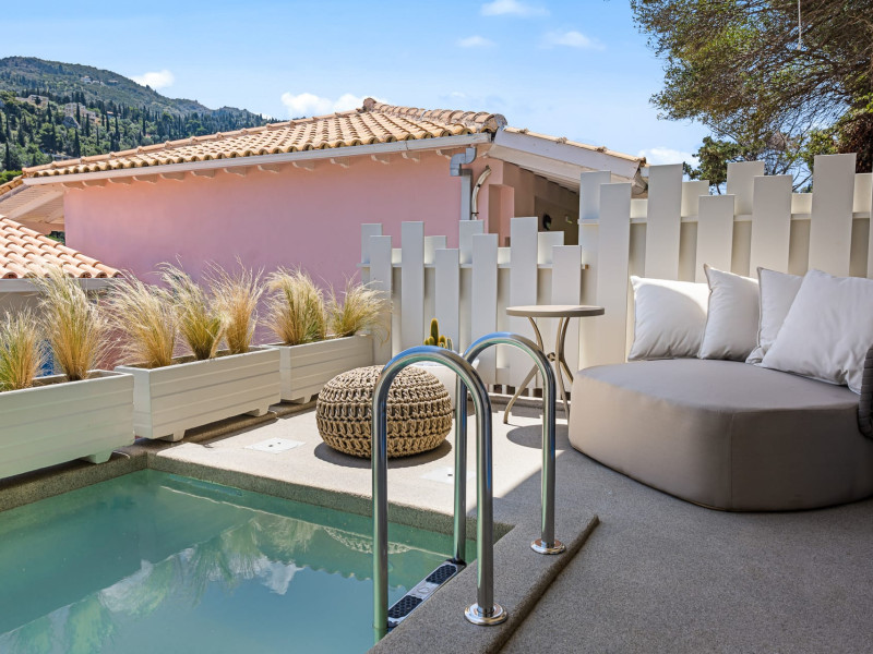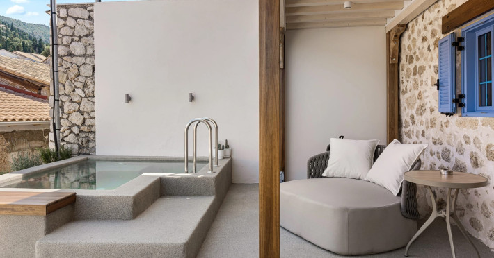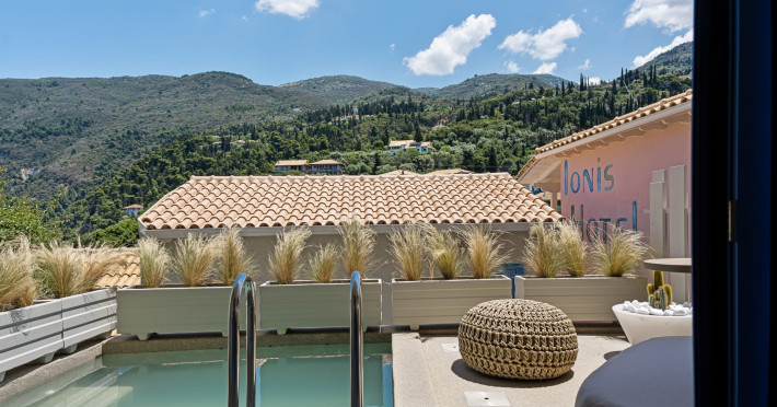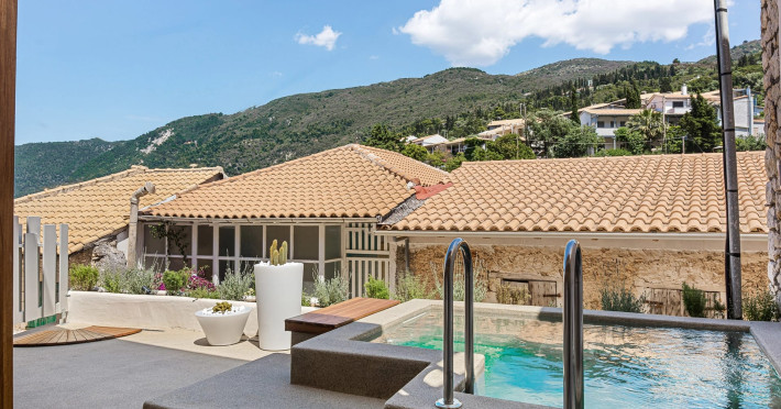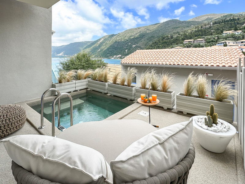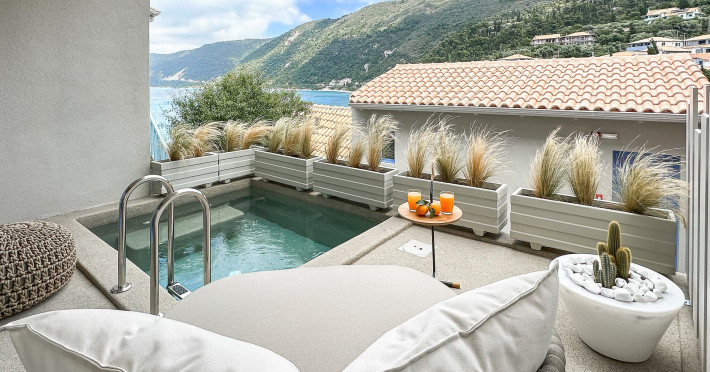 Located just steps from pristine beaches and vibrant towns, our prime location provides the perfect balance between secluded tranquility and convenient access to the island’s many wonders. Our six luxurious suites are thoughtfully designed with contemporary furnishings, lavish amenities, and private balconies or terraces boasting breathtaking views of the Ionian Sea. Select suites also feature private plunge pools for an added touch of exclusivity.