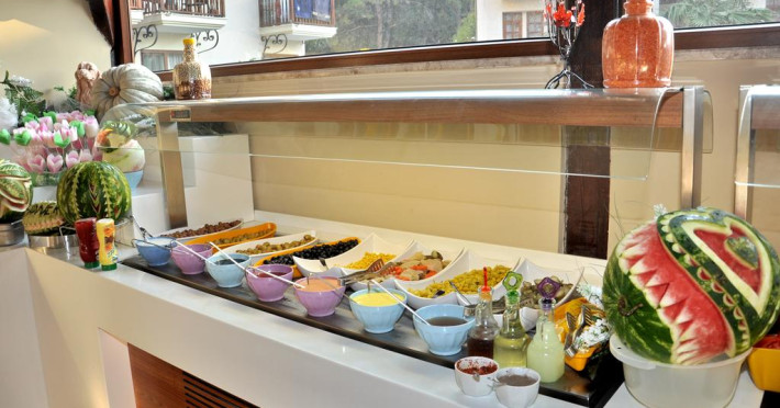 La Telmessos Hotel oaspeții au la dispoziție un restaurant care servește mâncare în stil bufet. Preparate din bucătăria internațională așteaptă să fie degustate în fiecare zi la micul dejun, prânz și cină. Masa poate fi servită atât în interior, cît si în aer liber, pe terasă, în funcție de vreme. Oaspeţii pot avea diverse băuturi răcoritoare sau alcoolice la bar. În cadrul proprietății există și un snack bar care servește băuturi și gustări.