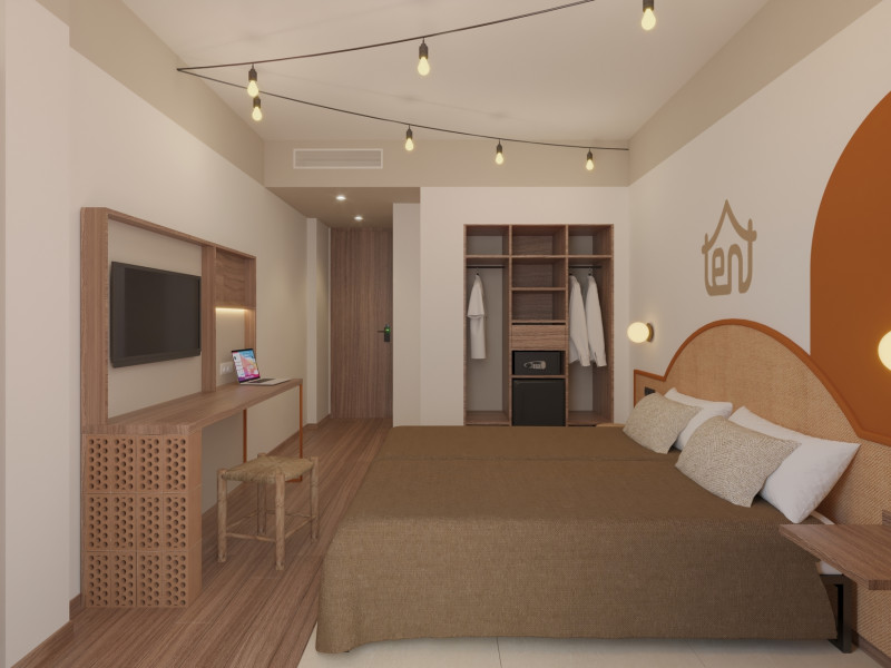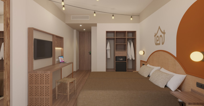 The roomsare spacious, bright and comfortable. With a simple, modern and functionaldesign, they have everything you need to enjoy a good night's sleep: airconditioning, TV with Chromecast, bathroom, safe and telephone.