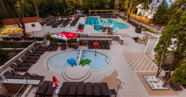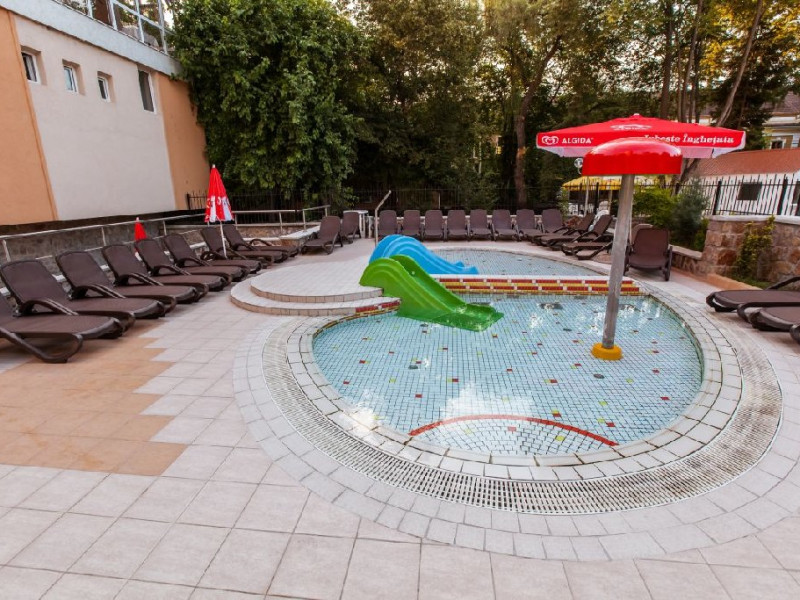 - 2 piscine de relaxare wellness cu apa termala (masaj cervical, ciuperca cu apa, paturi cu hidromasaj, perdea de apa, pool bar)