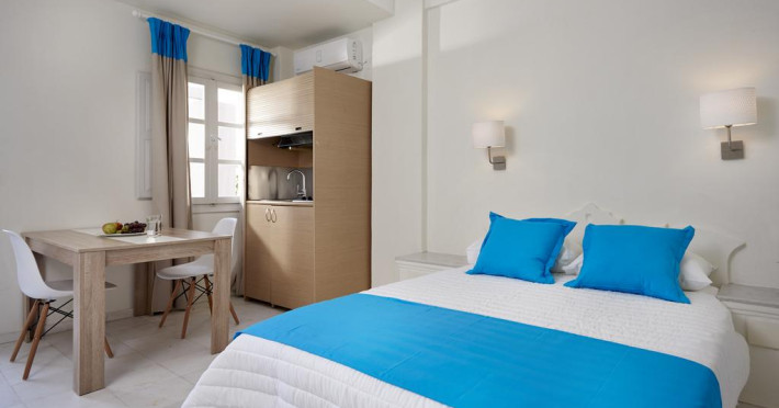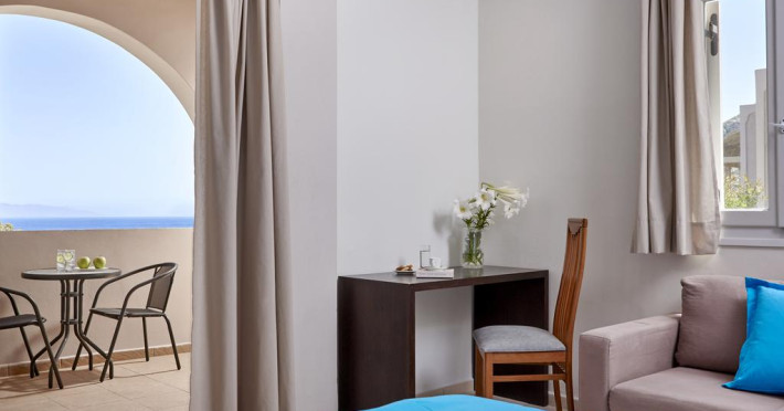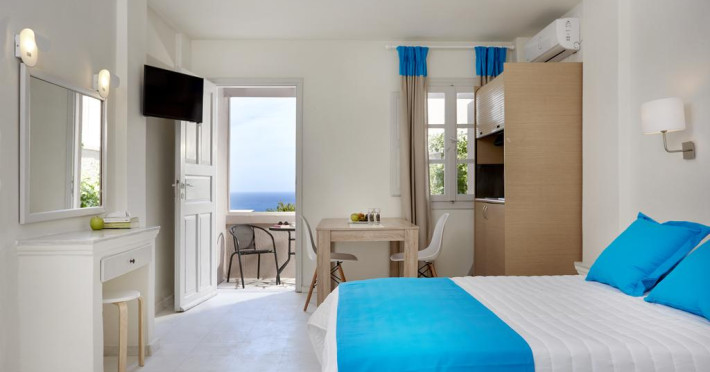 Terra Blue este o proprietate de 3 stele care se află în Kamari (Santorini), la o distanță de 300 m de plaja Kamari și oferă piscină în aer liber, cu șezlonguri și umbrele de soare, precum și un centru spa care asigură servicii pentru un sejur extrem de relaxant. Facilitățile de la Terra Blue includ și sală de fitness. Proprietatea are, de asemenea, servicii de concierge și închirieri auto. Se oferă acces gratuit la internet Wi-fi în spațiile publice.