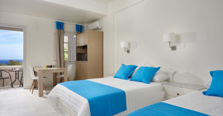 Sunt disponibile 42 camere. Camerele de la Terra Blue au în dotare aer condiționat și Tv. În camere există baie cu duș prevăzută cu foehn. Camerele au balcon cu masă și scaune unde pot fi petrecute momente de relaxare. Oaspeții au acces gratuit la serviciul Wi-fi în camere. Curățenia in cameră se poate asigura zilnic, contra cost. Proprietatea oferă camere pentru familie cu o suprafață mai mare și un număr mai mare de paturi față de cele standard.