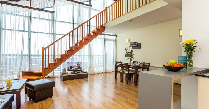 Baie (cada, WC, uscator de par), telefon, TV plasma, living, balcon, seif, bucatarie complet utilata, internet wireless, port conectare i-Pod.
