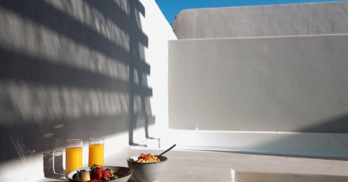 Terra Nera Suites is named after the famous black sand beach of Perivolos on the magnificent volcanic island of Santorini. This boutique hotel is made only for those individual travellers looking for exclusivity and relaxation while seeking to be right next to a cosmopolitan beach with numerous options for food and activities. Six unique suites come to satisfy the lovers of space, privacy and luxury. In addition to the contemporary luxurious inner space, 3 suites feature a spacious private yard with their own jacuzzi. Guests can spend their day sunbathing in the modern swimming pool located in the heart of the complex or at the black sand beach while enjoying freshly made drinks, food & snacks from the connected restaurant in the sea front. All suites may accommodate up to 4 persons making Terra Nera the perfect destination for families and couples. Terra Nera Suites buildings follow the traces of one of the oldest tomato paste factories of Santorini. The buildings were reconstructed from scratch maintaining the initial volumes and proportions of the factory combined with the enchanting traditional architecture of Cyclades. Interior design concept introduces selected elements of Acrotiri Prehistoric City frescos into the suites giving each one of them a unique name based on an artwork theme: “Chelidonia” (Swallows), “Papyrus”, “Krinakia” (Lilies), “Blue Monkeys”, “Antelopes”, “Fish”. The whole spirit of the renovation of the building is a blend of local and traditional materials and construction details along with historical art features put into contemporary architecture. Terra Nera Suites modern but yet authentic concept, offers all day luxurious comfort to guests who cherish the finest in life in terms of hospitality and the magnificence of nature. Exquisite tastes and spirits set the standard for an experience not meant to be forgotten.Terra Nera Suites is named after the famous black sand beach of Perivolos on the magnificent volcanic island of Santorini. This boutique hotel is made only for those individual travellers looking for exclusivity and relaxation while seeking to be right next to a cosmopolitan beach with numerous options for food and activities. Six unique suites come to satisfy the lovers of space, privacy and luxury. In addition to the contemporary luxurious inner space, 3 suites feature a spacious private yard with their own jacuzzi. Guests can spend their day sunbathing in the modern swimming pool located in the heart of the complex or at the black sand beach while enjoying freshly made drinks, food & snacks from the connected restaurant in the sea front. All suites may accommodate up to 4 persons making Terra Nera the perfect destination for families and couples. Terra Nera Suites buildings follow the traces of one of the oldest tomato paste factories of Santorini. The buildings were reconstructed from scratch maintaining the initial volumes and proportions of the factory combined with the enchanting traditional architecture of Cyclades. Interior design concept introduces selected elements of Acrotiri Prehistoric City frescos into the suites giving each one of them a unique name based on an artwork theme: “Chelidonia” (Swallows), “Papyrus”, “Krinakia” (Lilies), “Blue Monkeys”, “Antelopes”, “Fish”. The whole spirit of the renovation of the building is a blend of local and traditional materials and construction details along with historical art features put into contemporary architecture. Terra Nera Suites modern but yet authentic concept, offers all day luxurious comfort to guests who cherish the finest in life in terms of hospitality and the magnificence of nature. Exquisite tastes and spirits set the standard for an experience not meant to be forgotten.