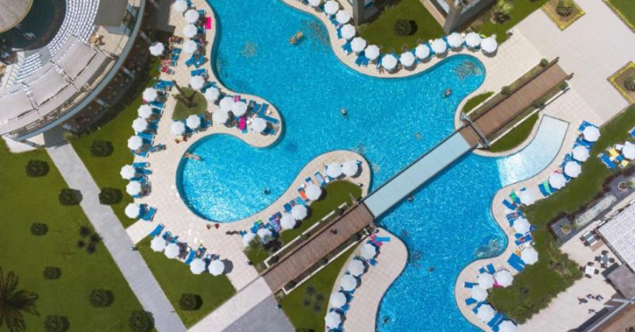 Hotelul oferă o gamă variată de facilități, inclusiv un hol primitor, un restaurant principal cu zonă pentru nefumători și baruri cu terasă, 2 restaurante à la carte (cu rezervare necesară), sală TV, Centru de distracție (Internet Cafe & Bowling, PlayStation, biliard contra cost), piscină exterioară cu 3 tobogane, piscină interioară, Spa & Wellness, piscină separată pentru copii, sezlonguri cu saltele, umbrele de soare și două săli de conferințe. Serviciile suplimentare, cum ar fi coaforul, magazinele, spălătoria și serviciile medicale, sunt disponibile contra cost. De asemenea, se oferă WiFi gratuit în hol.