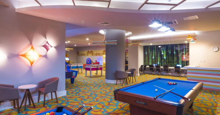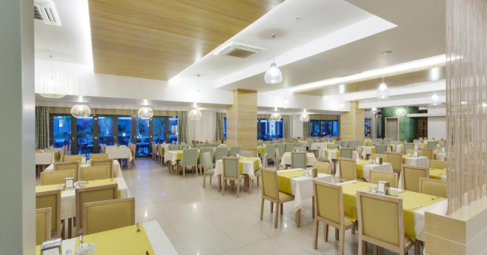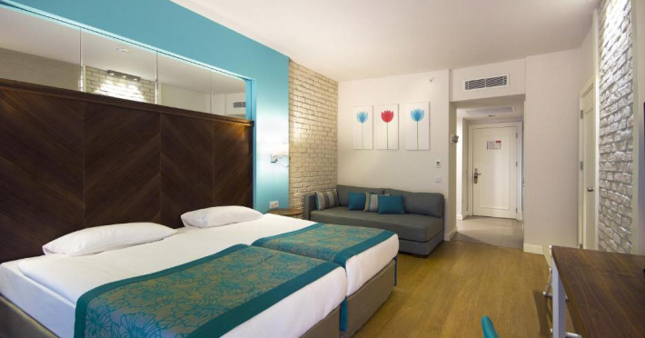 Hotelul pune la dispozitia turistilor sai camere cu vedere laterala spre uscat, 4 camere potrivite pentru persoanele cu mobilitate redusa (cu vedere la uscat), 5 Lifturi, Restaurant principal, 2 A’ la Carte si pe plaja, mai multe baruri, Patiserie , Lobby intr-o atmosfera placuta cu receptie, Programe de animatie soft, Mini Club, Sala de jocuri , Piscina cu apa dulce, piscina interioara, piscina separata pentru copii , Tobogane cu apa , Zona Spa & Wellness ,Sezlonguri, umbrele si prosoape de plaja.