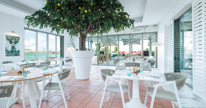 La Th8 Palm Managed By Accor oaspeții au la dispoziție un restaurant care servește mâncare à la carte. Preparate din bucătăria internațională și orientală așteaptă să fie degustate în fiecare zi. Masa poate fi servită atât în interior, cît si în aer liber, pe terasă, în funcție de vreme. În cadrul proprietății există și o cafenea care servește specialități din cafea și diverse delicatese.