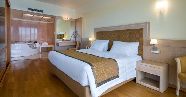 Camerele confortabile de la Thalassa Beach Resort sunt dotate cu pardoseală de gresie/ marmură, aer condiționat, Tv și seif. Oaspeții au la dispoziție serviciul de room service pentru a servi masa sau diverse băuturi. În camere există baie cu cadă sau duș prevăzută cu foehn. Oaspeții au acces gratuit la serviciul Wi-fi în camere. Curățenia in cameră se face zilnic. Proprietatea oferă camere pentru nefumători.