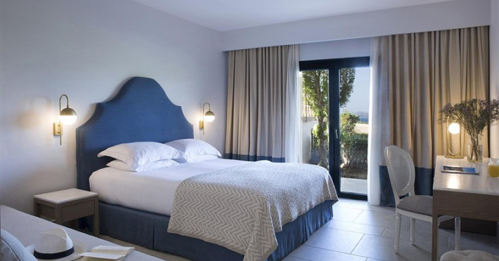baie din marmură cu dus sau cada,uscator de par,TV prin satelit, telefon cu linie directă,aer condiţionat , mini-frigider,seif şi facilităţi pentru prepararea de ceai şi cafea.Toate camerele au balcon sau terasa cu vedere la mare.
