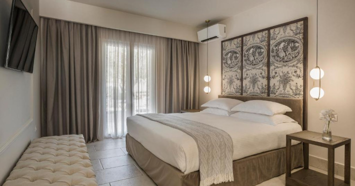 Camerele confortabile de la Thalassa Boutique Hotel au pardoseală de gresie/ marmură, aer condiționat, Tv cu canale prin satelit și seif. În camere există baie cu cadă sau duș ce are în dotare foehn și articole de toaletă gratuite. Oaspeții au acces gratuit la serviciul Wi-fi în camere. Camerele au balcon cu vedere la mare sau la grădină.