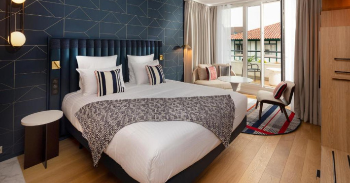 Camerele elegante oferă vedere spre ocean sau spre grădinile hotelului, fiind decorate in tonuri marine relaxante care reflectă poziționarea privilegiată la Oceanul Atlantic. Restaurantul L'Atlantique propune preparate locale rafinate, cu accent pe fructele de mare proaspete și specialitățile regiunii basce.