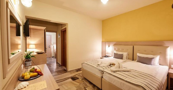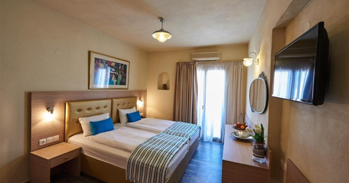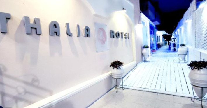 Hotelul Thalia Deco City & Beach se află în partea de est a orașului Hersonissos, la doar 500 de metri de centrul său, la 100 de metri de malul mării și la o plimbare de doar 10 minute de satele pitorești Koutouloufari și Piscopiano, precum și de centrul vechi al orașului Hersonissos. Clădirea hotelului, cu un parter și 2 etaje superioare, este ușor accesibilă cu ajutorul liftului. Cele 49 de camere sunt împărțite în nouă tipuri diferite pentru a satisface diversele cerințe, variind de la suite standard până la suite cvadruple.Descriere hotel