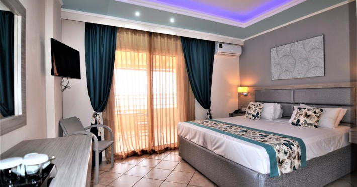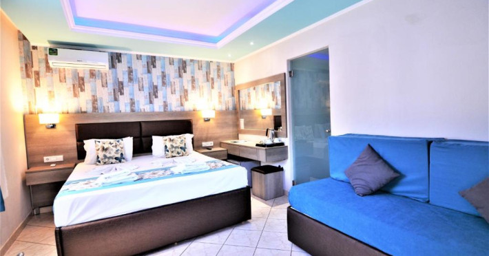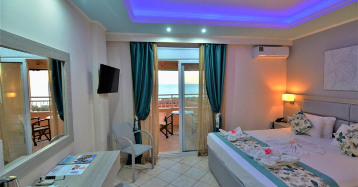 Sunt disponibile 22 camere. Fiecare cameră dispune de minibar. În camere există baie cu cadă sau duș. Camerele confortabile de la Thassos Grand Beach Hotel au pardoseală de gresie/ marmură, aer condiționat, Tv cu canale prin satelit și seif. Unele camere au balcon, cu vedere la piscină, unde oaspeții se pot relaxa în voie. Oaspeții au acces gratuit la serviciul Wi-fi în camere. Proprietatea oferă camere pentru familie cu o suprafață mai mare și un număr mai mare de paturi față de cele standard.