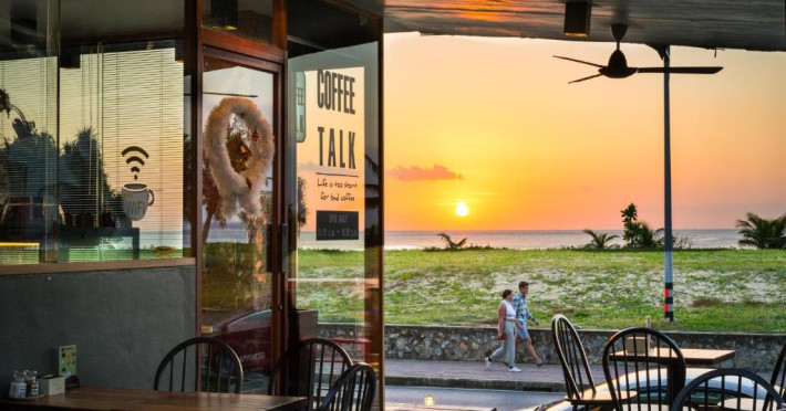 Oaspeții se pot bucura de vedere la mare, fripturi și preparate italiene la restaurantul italian Ciao Bistro. Aflată langă un iaz cu flori de lotus, cafeneaua Windsong este locul ideal pentru a savura micul dejun intr-o atmosferă liniștită.