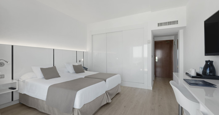 The aparthotel Hotel THB El Cid Adults Only is located in the vicinity of a sandy beach. There is a shuttle service between the hotel and the airport. Directly next to the beach there is a promenade where you can take leisurely walks. The air-conditioned hotel is equipped with a reception, Wi-Fi, a jacuzzi as well as parking spaces. In the outdoor area of the property you will find a garden as well as a pool that is open seasonally, where sun loungers and sun umbrellas are available for free. Furthermore, outside you can find a sun terrace. Inside the hotel you can use a heated indoor pool. Your valuables can be stored in the hotel safe. For conventions and other business meetings, the hotel offers a conference area with overhead projector. If you want to explore the holiday region, you can use the car rental service close to the hotel (extra fee). In addition, the hotel sells tickets for excursions. Due to its barrier-free facilities , such as barrier-free entrances, the hotel is also suitable for wheelchair users. Catering As catering services the hotel offers half board and breakfast only. Breakfast is offered from the buffet. Dinner is also served as a buffet. For the meals, there are a buffet restaurant and the pool bar. Distances