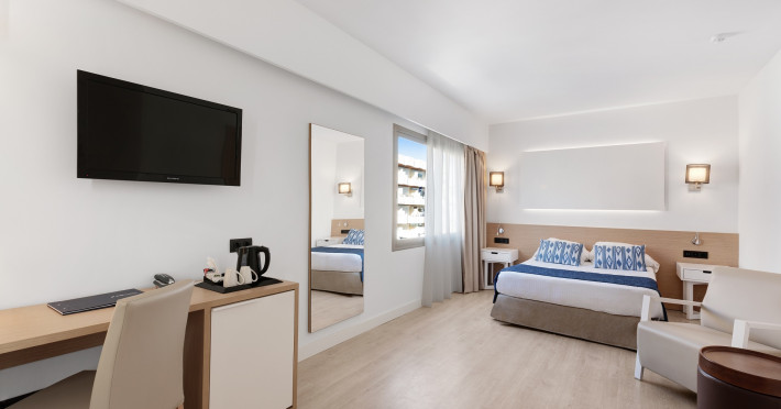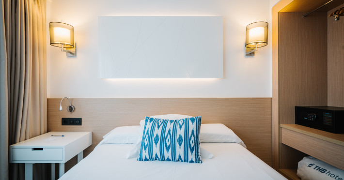 The hotel Hotel THB Los Molinos has a 24h reception, Wi-Fi, a lift, a hairdresser, a jacuzzi as well as a TV lounge. In the outdoor area you will find a garden as well as a heated pool, where sun loungers are available for free. You can store your luggage in the hotel's storage room. For conventions and other business meetings, the hotel offers a conference area. Due to its barrier-free facilities the hotel is also suitable for wheelchair users. Catering Breakfast is offered from the buffet. Dinner is also served as a buffet. Your physical well-being is catered for by a buffet restaurant. Sports & Leisure There is the option to play billiards. A sauna awaits you in the spa.The hotel Hotel THB Los Molinos has a 24h reception, Wi-Fi, a lift, a hairdresser, a jacuzzi as well as a TV lounge. In the outdoor area you will find a garden as well as a heated pool, where sun loungers are available for free. You can store your luggage in the hotel's storage room. For conventions and other business meetings, the hotel offers a conference area. Due to its barrier-free facilities the hotel is also suitable for wheelchair users. Catering Breakfast is offered from the buffet. Dinner is also served as a buffet. Your physical well-being is catered for by a buffet restaurant. Sports & Leisure There is the option to play billiards. A sauna awaits you in the spa.