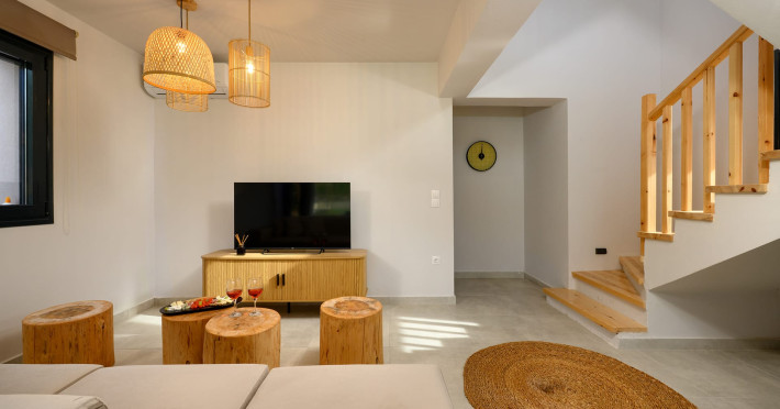 At AEOLINA, sustainability is not just a design choice — it is our responsibility as villa owners. By choosing solid wood furnishings crafted by local artisans, we reduce waste and ensure durability, while natural textures bring harmony with the olive-grove setting. Thoughtful lighting design enhances both comfort and energy efficiency, curated in collaboration with international artist Spiros Gelekas, whose vision blends beauty with mindful living. In every detail, we seek to balance elegance with respect for nature, so that each stay leaves a lighter footprint.At AEOLINA, sustainability is not just a design choice — it is our responsibility as villa owners. By choosing solid wood furnishings crafted by local artisans, we reduce waste and ensure durability, while natural textures bring harmony with the olive-grove setting. Thoughtful lighting design enhances both comfort and energy efficiency, curated in collaboration with international artist Spiros Gelekas, whose vision blends beauty with mindful living. In every detail, we seek to balance elegance with respect for nature, so that each stay leaves a lighter footprint.