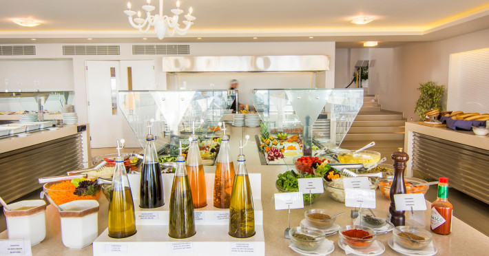 Zona cu restaurante dispune de un bar. Clienții vor găsi ospitalitate și o ambianță plăcută in cele 2 restaurante pentru nefumători. Hotelul oferă pentru masă demipensiune și regim all inclusive. Un mic dejun bogat de la bufet (și pentru cei ce se trezesc devreme și pentru cei ce dorm pană mai tarziu) motivează dimineața la trezit. Dimineața și seara clienții se servesc la bufet. Locul de cazare oferă un sortiment de băuturi alcoolice și nealcoolice.