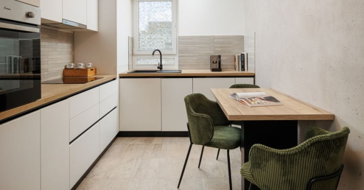 Apartamente cu 1 dormitor - dormitor si spatiu deschis, ce dispune de living, o bucatarie complet utilata, o baie cu dus si balcon exterior.
