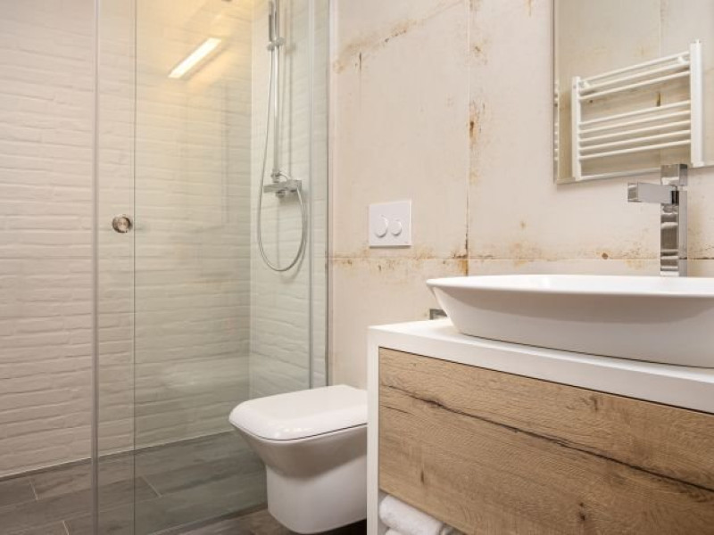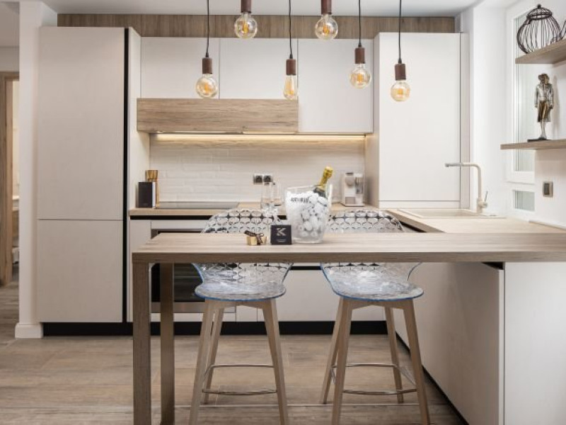 Dotari: prosoape, halate de baie, papuci, fier de calcat, uscator de par, umerase, plita cu inductie, frigider, masina de spalat vase, aer conditionat, WiFi, TV cu ecran plat.