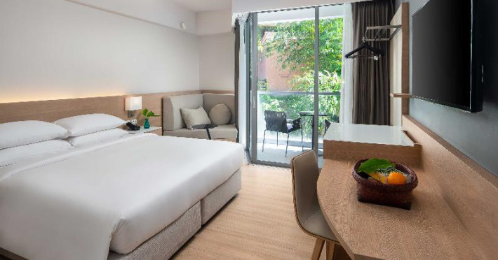 Hyatt Place Phuket, Patong features 161 guestrooms, including ten suites. Many of the rooms have adjoining options for family and friends. Each morning guests can enjoy the hotel's free hot breakfast, which features hot breakfast items, fresh fruit, local dishes and more. Stay refreshed with a selection of specialty beverages and a variety of premium beers, wines and cocktails. Our 24/7 Gallery Menu offers a freshly made meal, day or night. Guests can dine in our open-air Lobby, at our outdoor pool and patio area or in our air-conditioned, glass-enclosed dining space. Take a relaxing dip in our outdoor pool, cool feet in our wading pool or take advantage of our free 24/7 Stay Fit Fitness Center, which offers stunning views of the ocean. In addition, a kiddie pool and rental games will keep families engaged.Hyatt Place Phuket, Patong features 161 guestrooms, including ten suites. Many of the rooms have adjoining options for family and friends. Each morning guests can enjoy the hotel's free hot breakfast, which features hot breakfast items, fresh fruit, local dishes and more. Stay refreshed with a selection of specialty beverages and a variety of premium beers, wines and cocktails. Our 24/7 Gallery Menu offers a freshly made meal, day or night. Guests can dine in our open-air Lobby, at our outdoor pool and patio area or in our air-conditioned, glass-enclosed dining space. Take a relaxing dip in our outdoor pool, cool feet in our wading pool or take advantage of our free 24/7 Stay Fit Fitness Center, which offers stunning views of the ocean. In addition, a kiddie pool and rental games will keep families engaged.