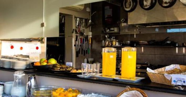 Există un bar/restaurant la ultimul etaj al hotelului, care oferă vederi uluitoare ale orașului. Micul dejun poate fi luat in restaurantul de pe acoperiș sau comandat prin room service. Există, de asemenea, un bar in zona recepției care servește cafea, băuturi și gustări pe tot parcursul zilei.