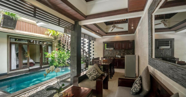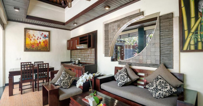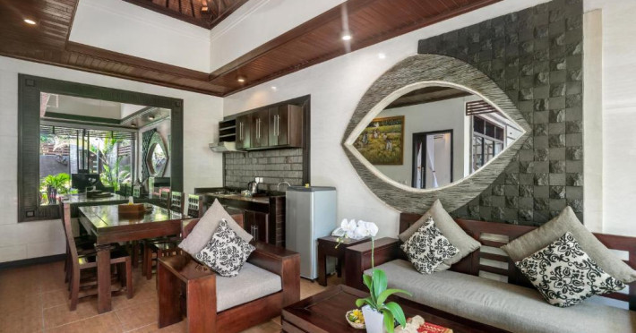 Avand arhitectură balineză modernă, vilele cu aer condiționat au living și sufragerie, terasă la soare și chicinetă.
