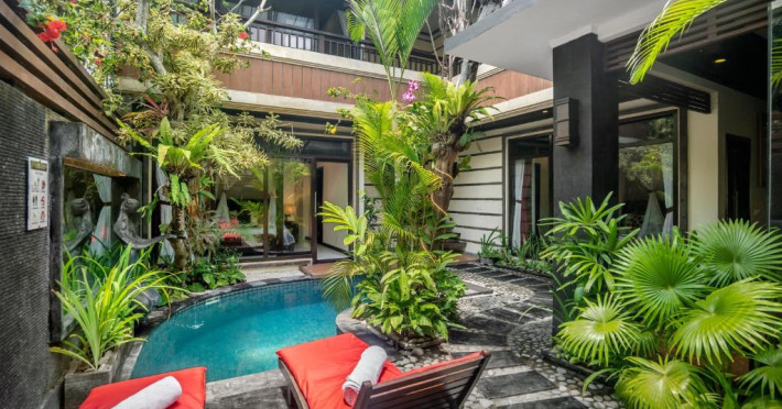 Vila se află la aproximativ 10 km de Aeroportul Internațional Ngurah Rai. Este oferit un serviciu de transfer cu autobuzul cu program fix către Kuta și Seminyak din apropiere.
