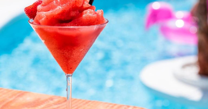 am să faceți sau baie reconfortată in piscină in aer liber, inconjurată de șezlonguri.