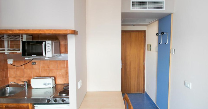 Fiecare studio are o cameră de zi cu zonă de dormit și o baie privată cu duș sau cadă. In chicinetă există aragaz și frigider. Seifurile sunt, de asemenea, disponibile pentru inchiriere.