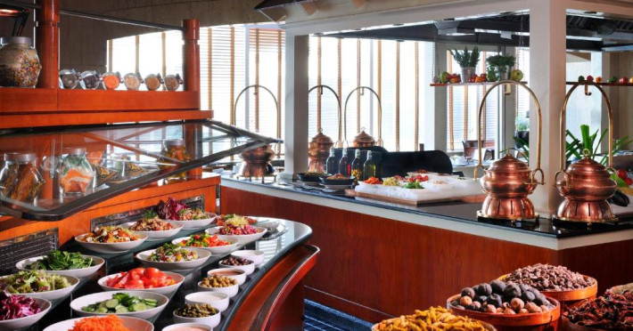Oaspeții pot experimenta aromele și parfumurile de la est la vest la Market Place, Bamboo Lagoon și Town Square. Oaspeții pot savura mese rafinate la premiatul The Bristol Steakhouse sau pot beneficia de o gamă de preparate din bucătăria italiană și asiatică.