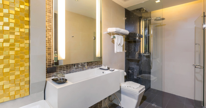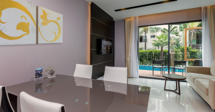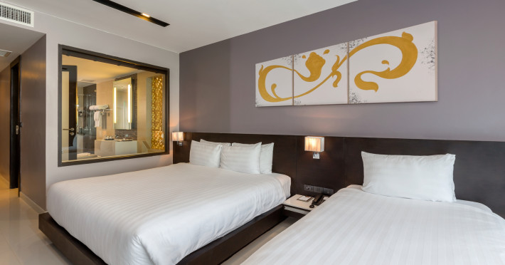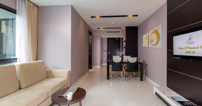 Around 150 m from a beach is located the accommodation The Charm Resort Phuket. The nearest restaurants and bars can be reached in a few minutes on foot. The old town is around 15,6 km away. Nearby there is a theatre which offers entertainment in high season. On the beach are beach towels available. The hotel is equipped with a 24h reception (check-in is possible around the clock), a lobby bar, Wi-Fi, internet access, 4 lifts as well as parking spaces. Outside there is a children's pool, where pool towels are available for free. You can store your luggage in the hotel's storage room. For your comfort, in addition to the concierge service the hotel page will ensure you are looked after. For guests on their honeymoon, the hotel has special offers such as romantic dishes in the restaurant. In your hotel, a lot of focus is placed on sustainability. This includes among others the provision of soap and shampoo dispensers. The hotel requires that all guests pay a deposit upon arrival. American Express is accepted as means of payment. Catering As catering services the hotel offers half board and full board. Breakfast is offered American or from the buffet. Enjoy your lunch with desserts as well as salads à la carte. Dinner is served à la carte. When booking all-inclusive, one welcome drink and one meal in the à la carte restaurant are included. For the meals, there are a buffet restaurant (gluten-free and vegetarian dishes) and 2 bars, a 24h snackbar, the pool bar as well as a sky bar. The drinks menu of the hotel includes water, coffee and tea, beer and wine. You can take part in the cooking classes offered by the hotel during your stay. Distances