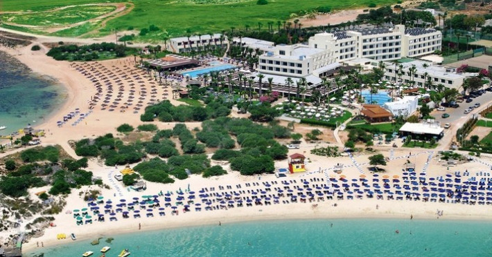The Dome Beach Hotel & Resort is ideally situated on the golden sands of Nissi Bay, on the Macronissos Beach, west of Ayia Napa, in a quiet setting, set amid well landscaped, gardens. It is rested between a peninsula of 19 rock-cut archaeological tombs dated back to 1872, directly on two superb bays & natural golden fine sandy beaches. Combining a high quality of service with warm, friendly Cypriot hospitality, the hotel is well suited to holiday makers of all ages and is most popular with families, due to the wide range of sports and entertainment on offer. The nearest shops and taverns are a short 600 meter stroll from the hotel. This impressive hotel offers a choice of accommodation with standard rooms and various suite types with spacious interiors offering all necessary amenities for an enjoyable stay.Datorita dinamicitatii domeniului disponibilitatea ofertelor se modifica de la un moment la altul. De aceea ofertele sunt valabile in limita locurilor disponibile. Agentia nu este responsabila pentru eventualele neconcordante care pot aparea intre informatiile privind tarifele si alte detalii din site si informatiile primite in agentie. In aceste cazuri vor avea prioritate, intotdeauna, informatiile primite in agentie.