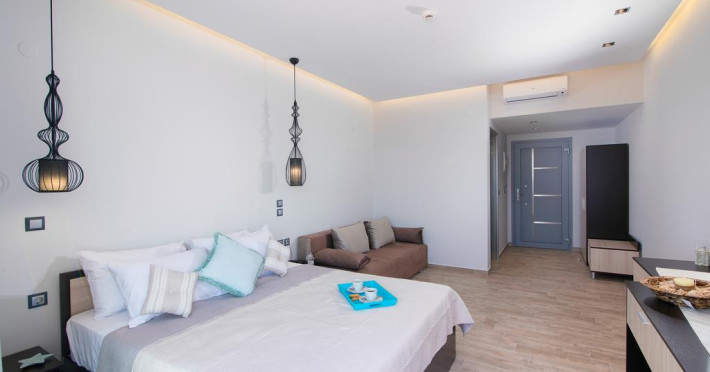 Fiecare cameră dispune de minibar și cană pentru preparare apă caldă. În camere există baie cu cadă sau duș ce are în dotare foehn și articole de toaletă gratuite. Camerele confortabile de la Dome Luxury Hotel sunt dotate cu pardoseală de gresie/ marmură, aer condiționat, Tv și seif. Unele camere au balcon cu vedere la mare sau la grădină. Oaspeții au acces gratuit la serviciul Wi-fi în camere. Toate camerele spațioase de la Dome Luxury Hotel au canapea în living, ceea ce oferă un plus de confort. Proprietatea oferă camere pentru familie cu o suprafață mai mare și un număr mai mare de paturi față de cele standard. Se pot rezerva de asemenea camere pentru nefumători.