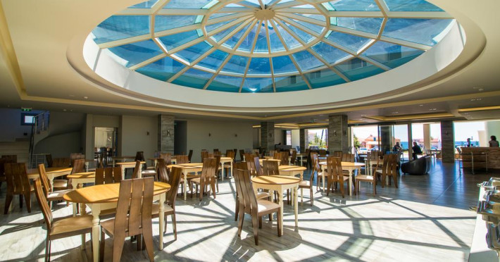 La Dome Luxury Hotel oaspeții au la dispoziție un restaurant care servește mâncare în stil bufet și à la carte. Preparate din bucătăria grecească așteaptă să fie degustate în fiecare zi. Masa poate fi servită atât în interior, cît si în aer liber, pe terasă, în funcție de vreme. Oaspeţii pot avea diverse băuturi răcoritoare sau alcoolice la bar. În cadrul proprietății există și un snack bar care servește băuturi și gustări.