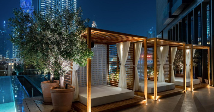 THIA invites you to luxuriate in Dubai’s mostspectacular infinity pool, where relaxation accompanies breath-taking views andurbane chic. Located on level two of the hotel, the outdoor pool terrace iscomplete with sun loungers, luxe cabanas, a slick bar in a garden-like setting.From sunrise, the rooftop terrace will offer a laid-back, relaxing atmosphere,with light fare, creative cocktails and exotic shisha flavours. Open daily.Prior reservations recommended.