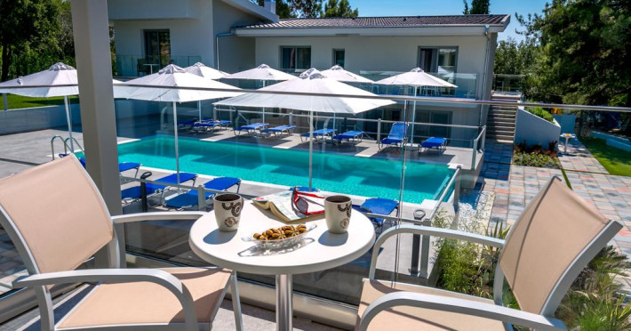 Unitatea de cazare se afla la 150m distanta de plaja. Golful principal din Pefkari este, de asemenea, în apropiere. Este o unitate de cazare nou construita pentru sezonul 2017. Toate unitățile de cazare au design modern și sunt dotate cu mobilier de calitate, TV SAT, AC, plase de țânțari, uscător de păr, seif și internet gratuit. Au bucătărie și balcon cu vedere la piscină. Baia este cu cabina de dus din sticla. Sunt situate la parter și parter înaltDatorita dinamicitatii domeniului disponibilitatea ofertelor se modifica de la un moment la altul. De aceea ofertele sunt valabile in limita locurilor disponibile. Agentia nu este responsabila pentru eventualele neconcordante care pot aparea intre informatiile privind tarifele si alte detalii din site si informatiile primite in agentie. In aceste cazuri vor avea prioritate, intotdeauna, informatiile primite in agentie.